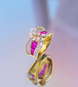 Celebrate every bit of yourself that aligns in perfect harmony to make you radiant and mesmerising. The Esperia collection captures that essence with closely set baguette-cut rubies and sapphires aligned perfectly and woven into exquisite pieces that embrace heritage with a modern twist.