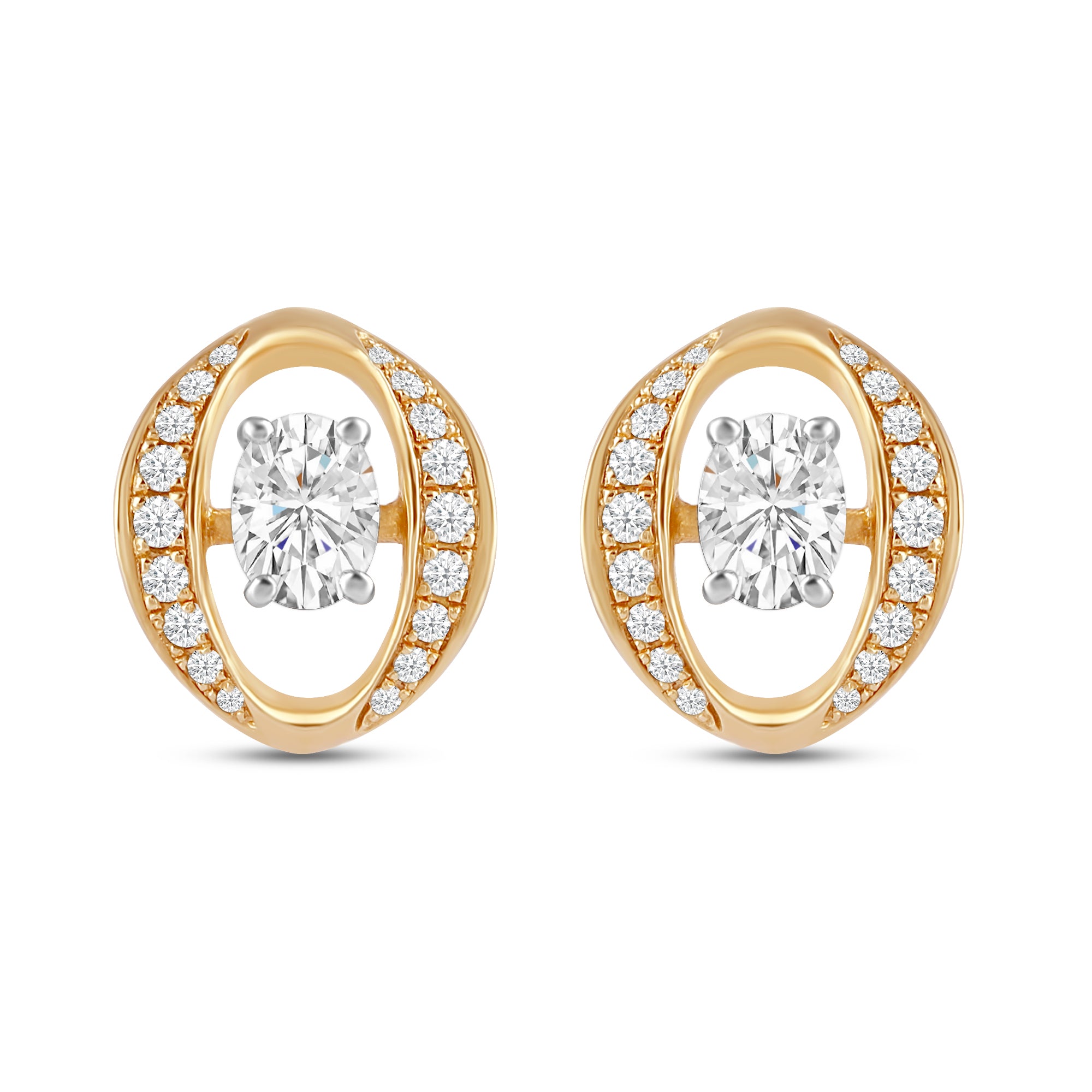 The Crestium Leora earrings play up the drama in the prettiest way — a glowing oval diamond at the center, hugged by a trail of sparkling round cuts on each side. Set in rich, sun-lit gold, these studs are all about laid-back luxe with just the right amount of shine.