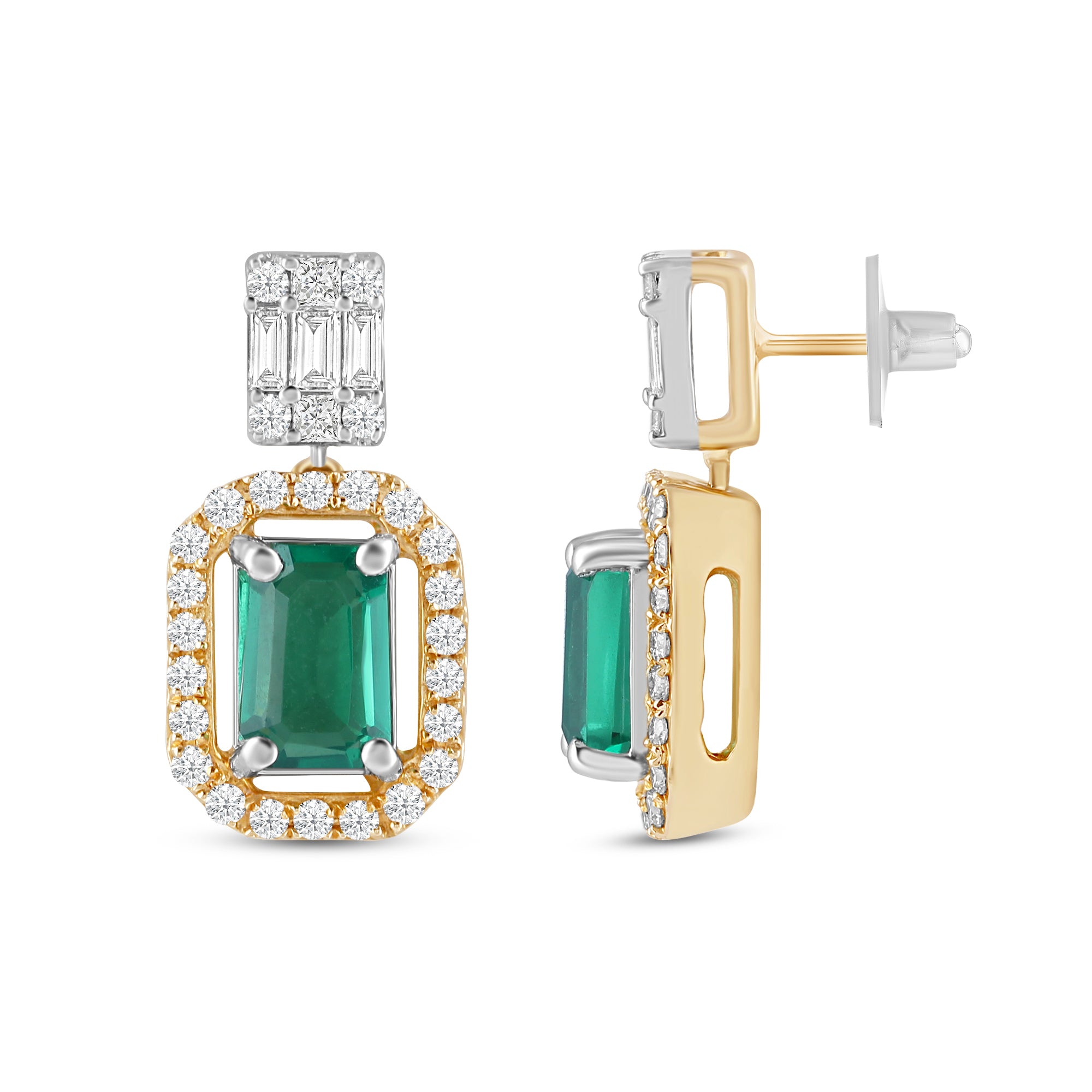 The Emerse Colour Couture earrings are perfectly poised between modern glamour and classic luxury. These captivating drop earrings feature lush green ocotogon hydro emeralds, cascading from a diamond-studded top, creating a graceful piece worthy of your timesless jewellery box.