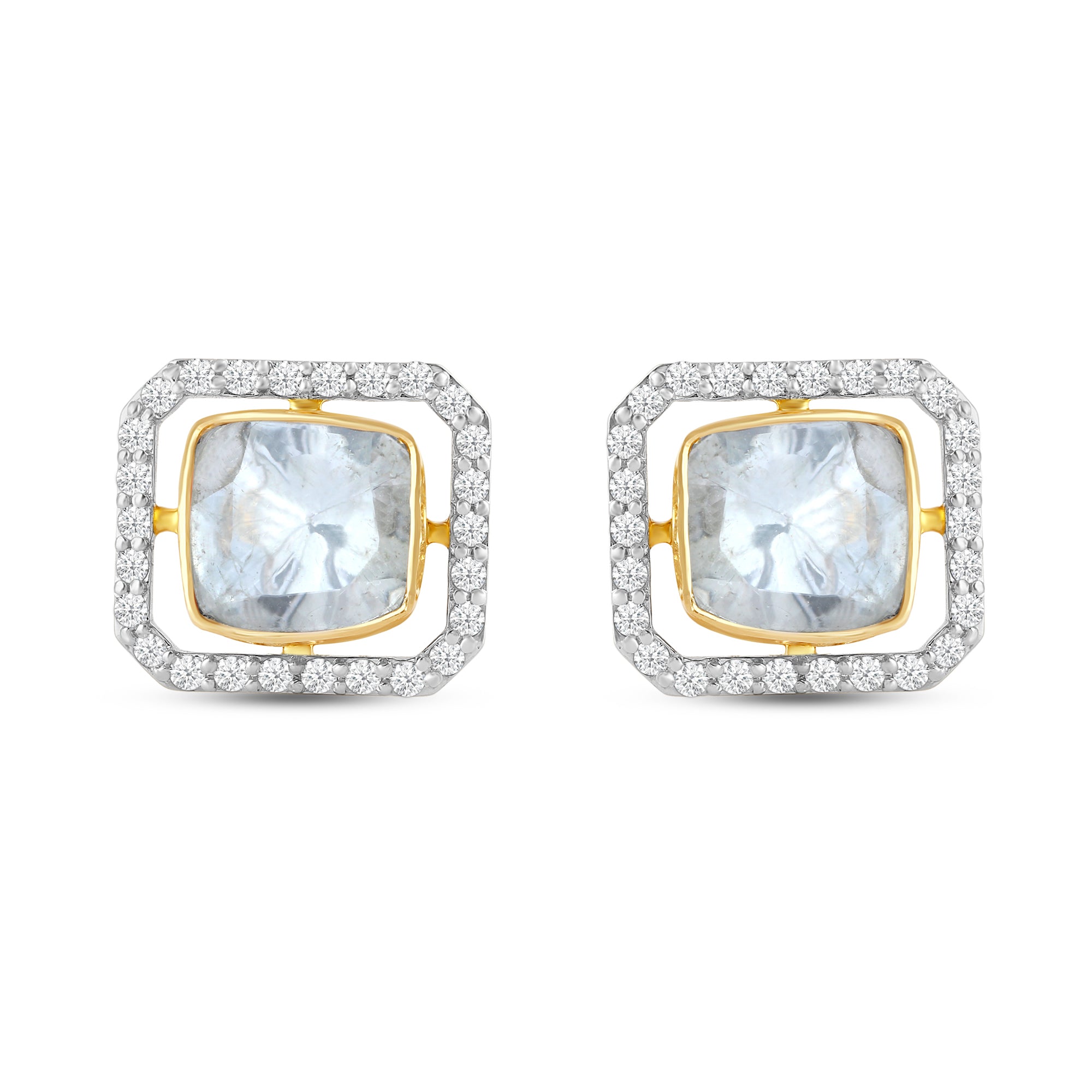 The Regalia Amara earrings are sculpted in radiant yellow gold and framed with precision-set diamonds. The dual-layered geometry—an outer halo of brilliance enclosing a gleaming textured core—evokes the intricate balance between classic opulence and architectural minimalism.