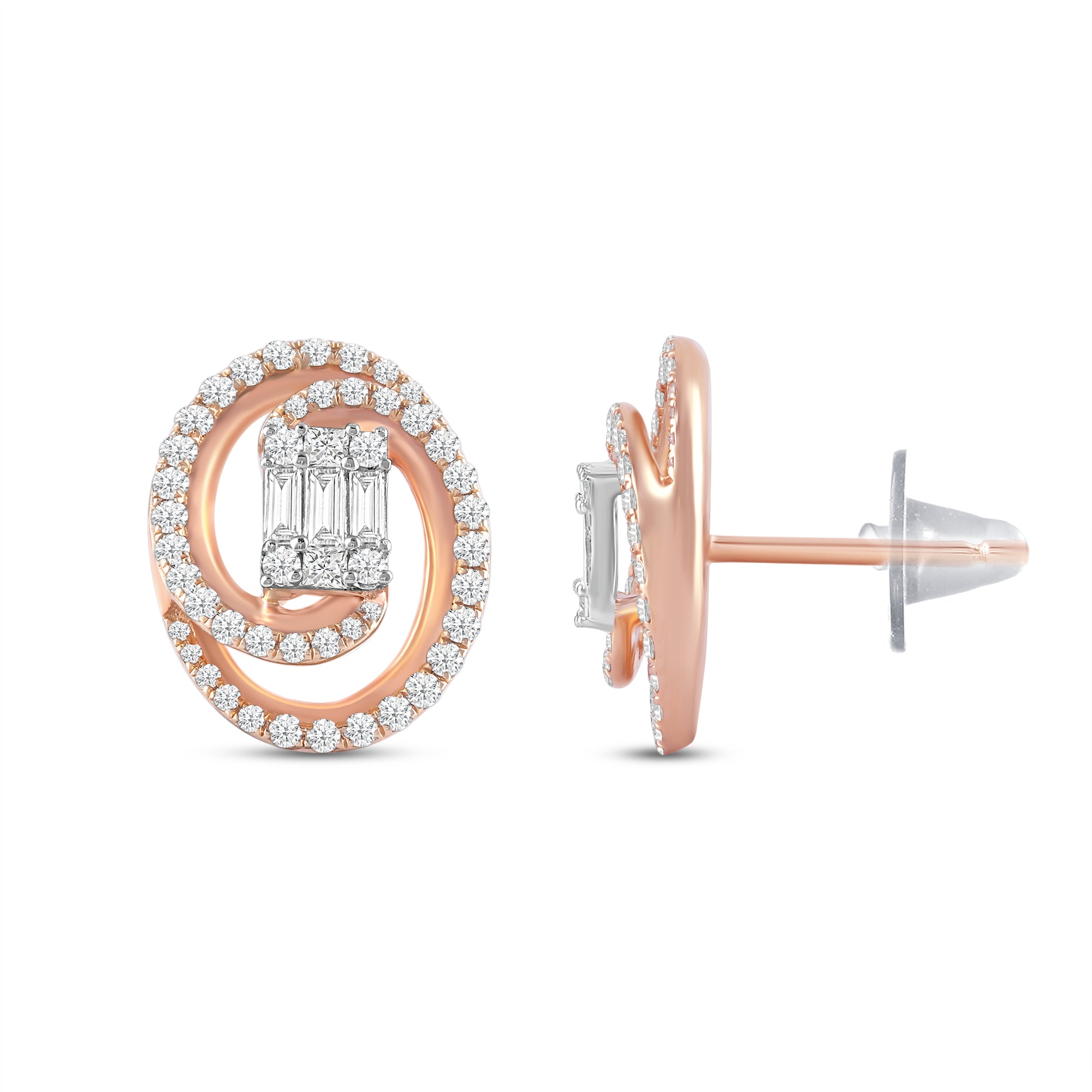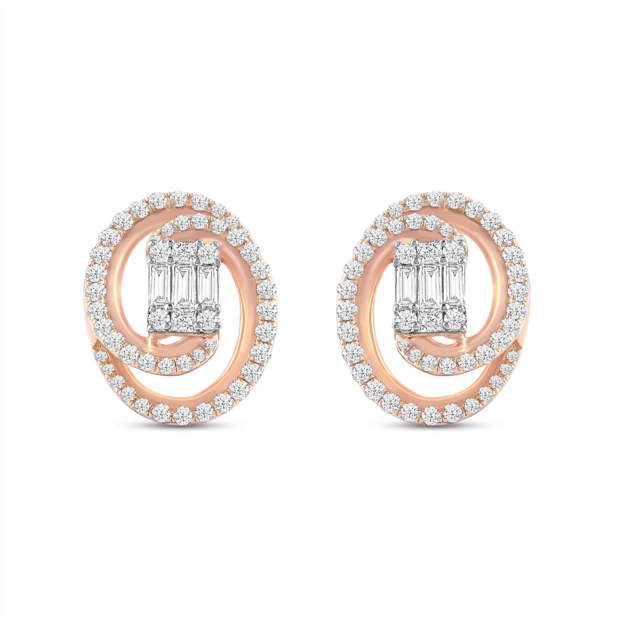 The Seris Leora earrings feature meticulously set baguette-cut diamonds that flow in graceful, swirling formations. The clean precision of each linear diamond contrasts beautifully with the fluid rose-gold silhouette, ideal for those who find beauty in balance.