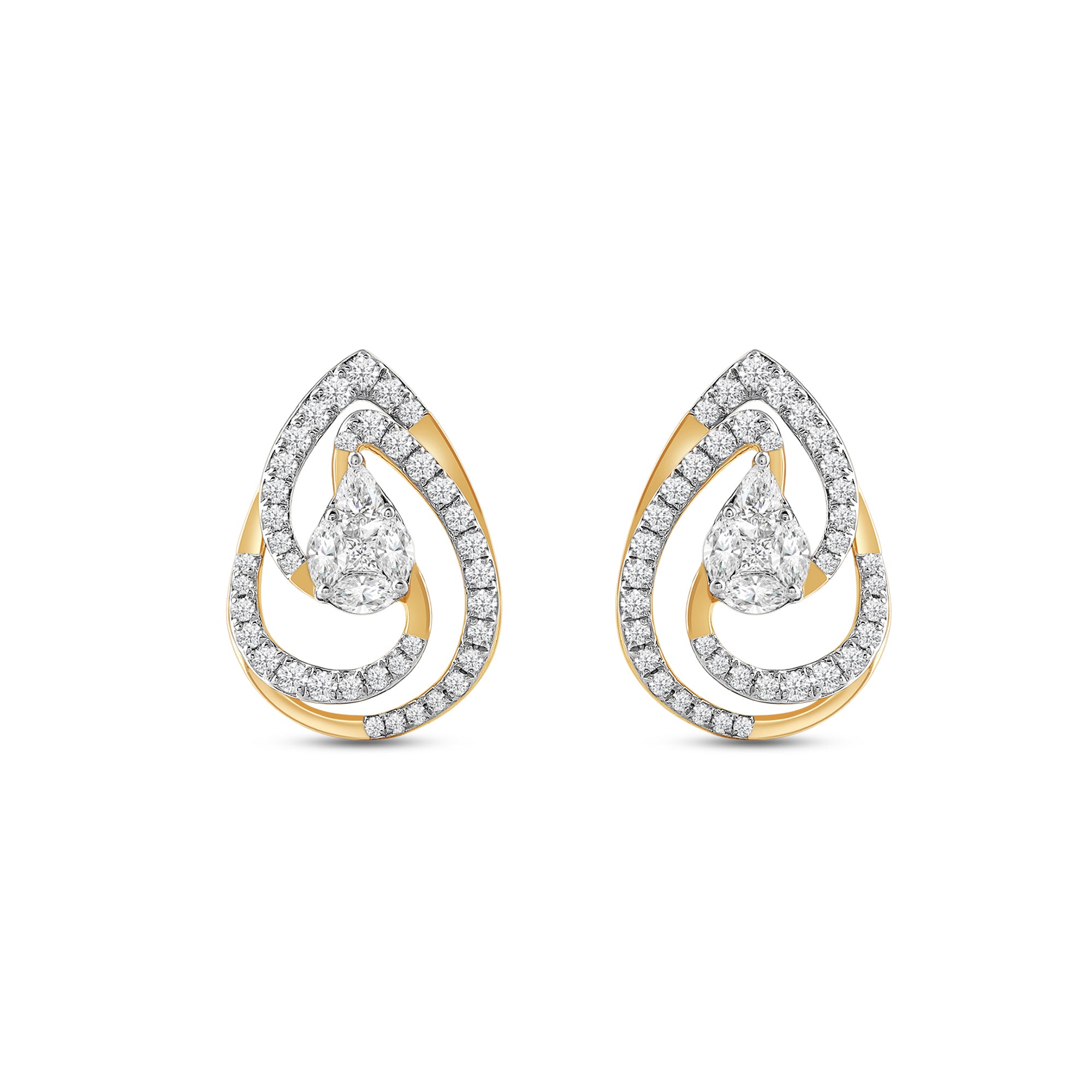 The Svanne Leora Earrings is beauty sculpted into structure. The contrast of bold gold curves with the refined sparkle of diamonds creates a dramatic interplay of light and texture, evoking the natural grace of a cosmic dance.