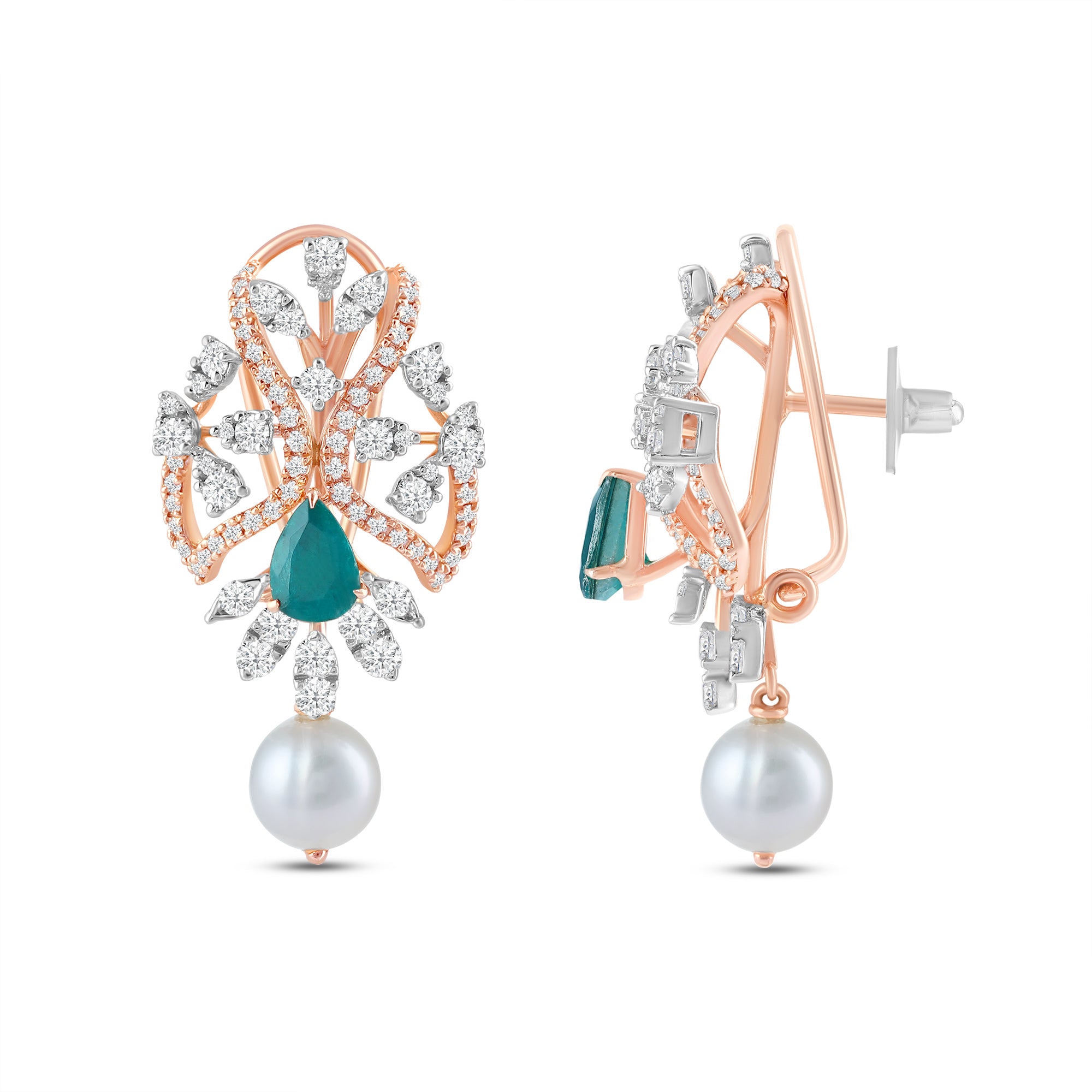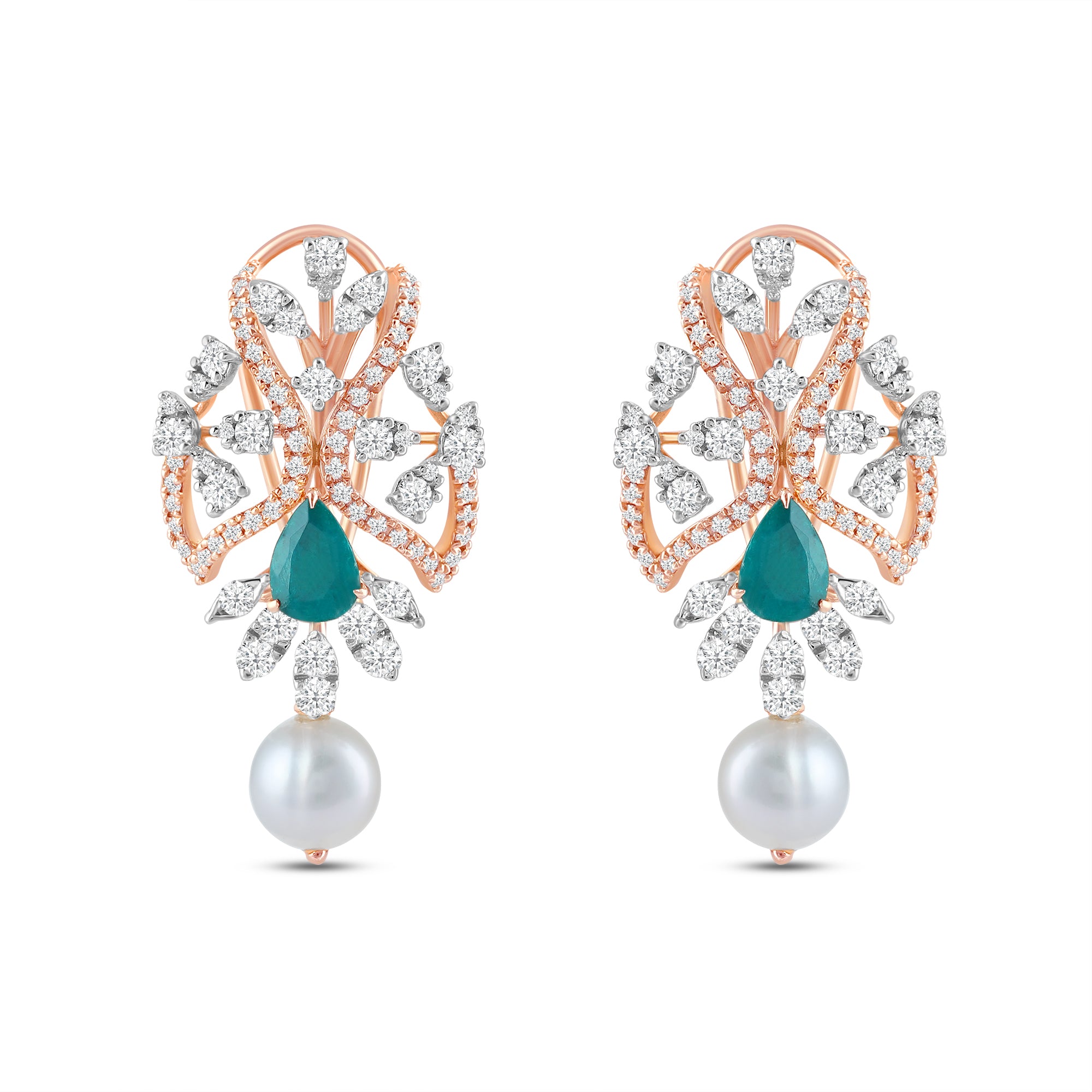 The Sylveria Colour Couture earrings capture the soul of the forest in every exquisite detail. Rich emeralds nestle amongst a canopy of brilliant pear-shaped diamonds cascading into culture pearl-drops, like the shimmer of sunlight filtering through the trees.